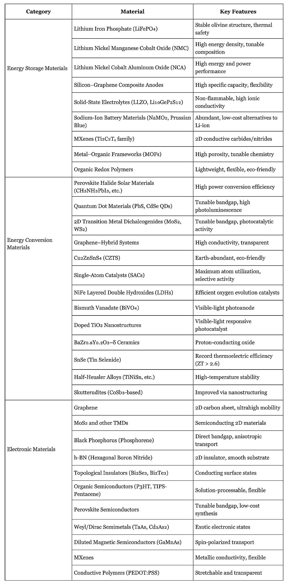 The trajectory of advanced materials from the 19th to the 21st century is proof to the increasing sophistication of human engineering. Each century built upon the last, solving the dominant problems of its time: mass structure, information technology, and now, sustainable, intelligent functionality. The coming era of materials science will be shaped by a synergistic blend of computation, chemistry, and physics, enabling the creation of materials that transform our world. The primary objective of materials research is to derive exceptional properties from substances through rational design and control modification, thereby enabling the development of next-generation technologies. In the 21st century, the field of materials science has progressed at an unprecedented pace, marked by the discovery of novel materials exhibiting extraordinary physical, chemical, and electronic properties that surpass those of conventional systems. Current research efforts are predominantly directed toward applications in energy storage, energy conversion, quantum computing, and advanced electronic devices.